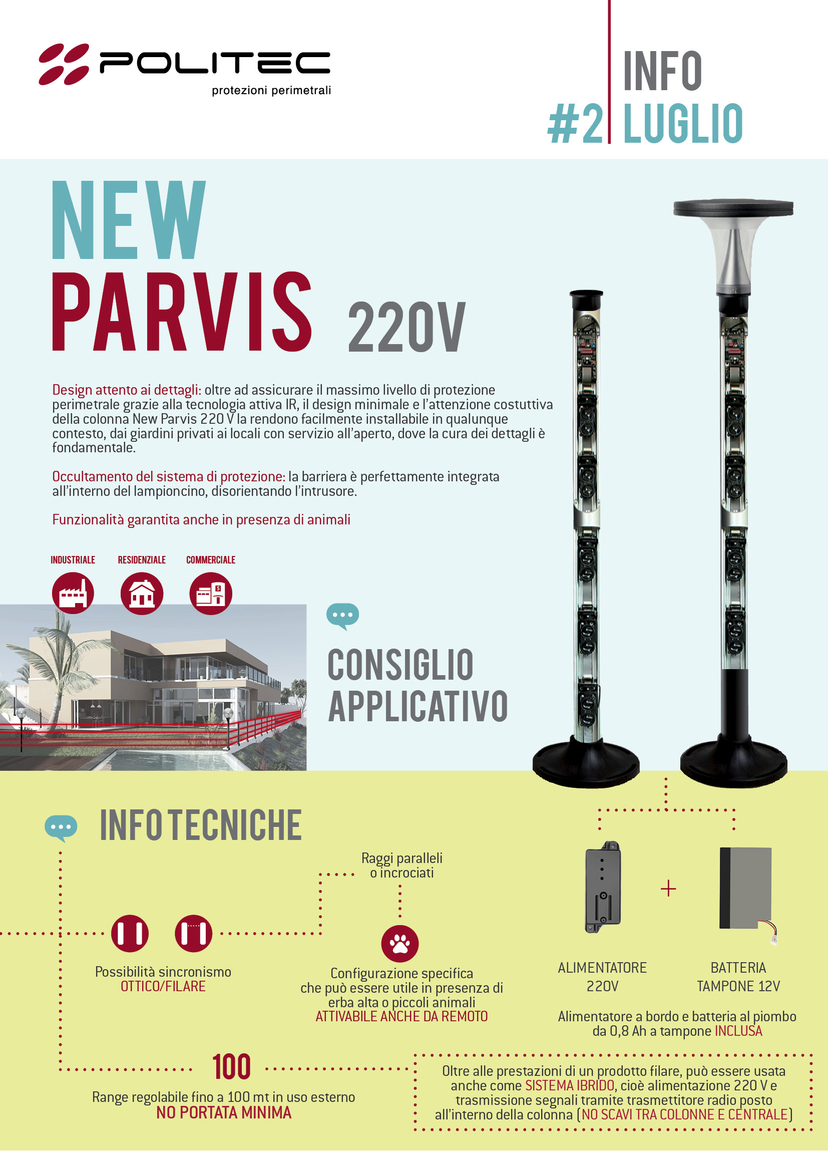 abbiamo il piacere di informarti che è disponibile la nuova barriera PARVIS alimentabile direttamente a 230V.